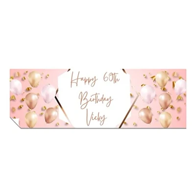 Personalised Birthday Banners Happy for Men & Women HD Printed Banner Decorations Him or Her Party Wall Pink Gold 1 x 6ft Large