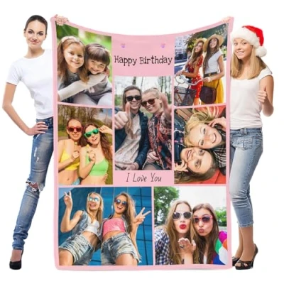 Personalised Birthday Gifts for Women, Blankets Adults, Customised with Photos, Customise Photo Blanket, Christmas Best Friends