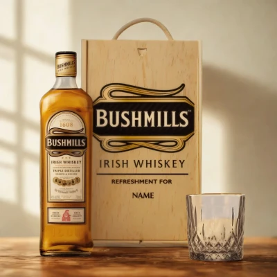 Beer HunterPersonalised Bushmills Irish Whiskey, Gifted with a Personal Touch – 70cl, 40% ABV Celebrate any occasion with this Personalised Bushmills Irish Whiskey Gift Set – a thoughtful present combining Irish heritage with your own unique message. Featuring a smooth triple-distilled whiskey, a whisky tumbler, and a personalised label, all presented in a stylish wooden box, it’s perfect for birthdays, milestones, or raising a toast to someone special. What’s Inside? 70cl Bottle of Bushmills Irish Whiskey is known for its light, approachable style, with notes of honey, vanilla, and a gentle oak finish. This gift set includes a full-size bottle with your customised label, a quality whiskey glass, and a handcrafted wooden gift box to complete the experience