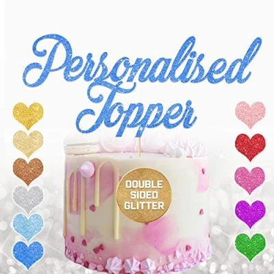 Personalised Glitter Card Cake Topper. Multicoloured Non-Shed Double Sided Glitter Card. Custom Any Word Wedding Birthday Xmas Cake Topper. Personalised Party Decoration Size: Approx Height * Width = 4.7" x 7.1" (12 x 18cm) (sizes will calculate by the length of word.) Glitter cake toppers are provided unmounted, so you can make the best decision on the plastic stick height and placement. Click Customize Now to create your Personalised Cake Topper., Manufacturer: EDSG