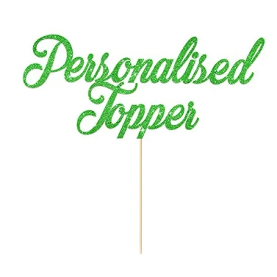 Personalised Cake Topper Custom Any Occasion Decorations Double Sided Glitter Card Text Customized Word Multicolour Birthday or Wedding Party Decoration (Green)