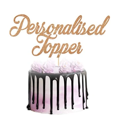 Personalised Cake Topper Custom Any Occasion Decorations Double Sided Glitter Card Text Customized Word Multicolour Birthday or Wedding Party Decoration (Rose Gold)