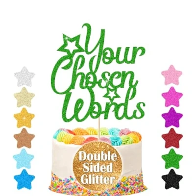 Personalised Cake Topper Customized Birthday Decorations. Double Sided Glitter Card Text or Wedding Party Multicolour Decoration(Green)
