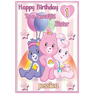 Personalised Care Bears Inspired Birthday Card (Balloons Design) Gorgeous !