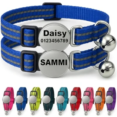 ⭐ 2-PACK CUSTOM ENGRAVING: Each collar is engraved to order with your cat’s name and phone number, providing a clear and reliable ID tag for everyday identification. ⭐ PROMPT UK SHIPPING: Orders placed before the daily cut-off are engraved and sent from our UK studio, with later orders dispatched the next working day. ⭐ REFLECTIVE & SAFE DESIGN: The quick-release buckle opens under pressure to help prevent snags, while reflective stitching improves visibility in low light. ⭐ ADJUSTABLE & LIGHTWEIGHT: Soft nylon adjusts easily for kittens or adult cats, and the removable bell allows a quiet or playful option. ⭐ COLOURFUL & RELIABLE: Available in a range of bright colours to suit your cat’s personality, with a comfortable design suitable for daily wear.