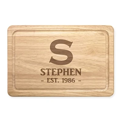 Personalised Chopping Board Big Letter Est Date Birthday Any Name Wooden Meat Serving Custom