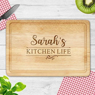 The laser-engraved chopping board is the ideal gift for couples or families, also great as a housewarming. Wedding Gifts for Couples, Anniversary, Valentines or Birthday present. Personalised Chopping board available in 6 designs with families names or names. This board is made from natural oak wooden. Measuring approx.29*20*1.2 cm. Hand Finished in UK The custom cutting board can be used for a variety of things including chopping and slicing and features a small groove to catch crumbs and liquids. Not dishwasher safe, hand wipe only., Manufacturer: EDSG