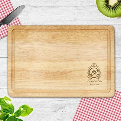 Personalised Chopping Board Cheese Oak Wooden Cutting Wedding Gift Laser Engraved Housewarming Anniversary Mothers Day for Couples & Families(5 Initial Design)