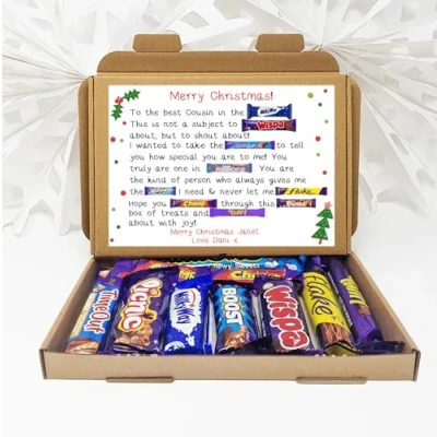 Personalised Christmas Poem Chocolate Treats Box Gift Hamper for Him/Her Sweet Treat a Loved One Cousin