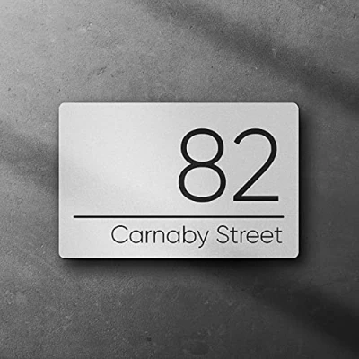Personalised Contemporary Floating Composite Aluminium Metal House Sign Modern Door Number Plaque Address 200mm x 130mm (White Background)