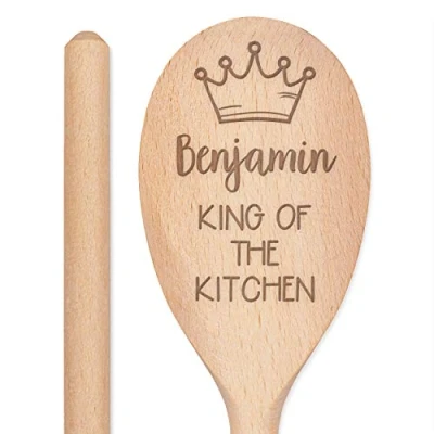 Personalised Custom Engraved Wooden Spoon King of The Kitchen Any Name Text