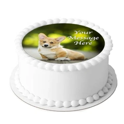 Personalised Cute Corgi Dog Puppy 7.5 inch Circle on Decor Icing Sheet Edible Cake Topper Perfect for Decorating Larger Cakes