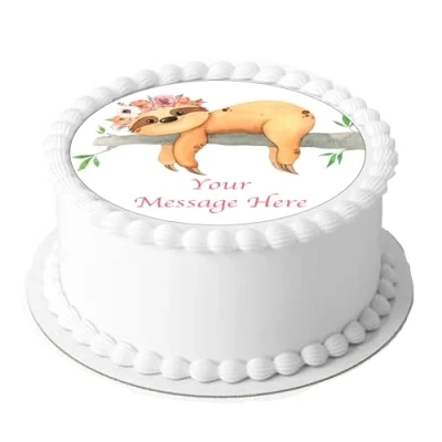 Personalised Cute Sloth Animal 7.5 inch Circle on Decor Icing Sheet Edible Cake Topper Perfect for Decorating Larger Cakes