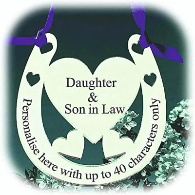 Personalised Daughter & Son In Law Silver Mirror Acrylic 3mm Wedding Bridal Gift Lucky Keepsake Horseshoe. AGiftForYouUK DS1