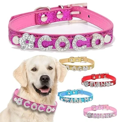 Personalised Dog Collar for Small Dog/Cat Collars with Name Puppy Cat BLING PU Leather Kitty Pets Middle Large Collar(Bling Rose Pink,XS)