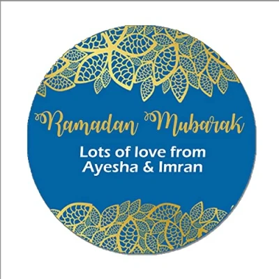 35 Personalised Round Stickers. Printed on A4 Sheets - Can be personalised: Top Line (eg. Eid Mubarak / Ramadan Mubarak / Ramadan Kareem) Bottom Line (2 names or Family name) Lovely finishing touch to your presents. A Lovely way to make your Eid Celebration favours that extra bit SPECIAL! One sheet with 35 individual round stickers. Size is approximately 3.7 cm. Good quality, professionally designed labels, to make your a little more personal. Personalisation Information required: Bottom Line: 2 names or Family name. Each sticker sheet (35 stickers) will be printed with the SAME wording so if you require more than one lot of wording please purchase another sheet. Use 'Customize Now' button, add the personalization you require. Select 'Add to Basket' and then Checkout.