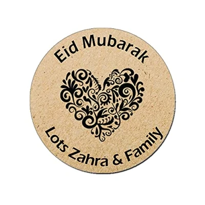 35 Personalised Eid Mubarak Round Stickers. Printed on A4 Sheets - Can be personalised with two names or a family name. Lovely finishing touch to your presents. A lovely way to make your celebration that extra bit special! Individual sticker size is approximately 3.7 cm. Good quality, professionally designed labels, to make your a little more personal. Personalisation Information required: Two names or a family name. Each sticker sheet (35 stickers) will be printed with the SAME wording so if you require more than one lot of wording please purchase another sheet. Use 'Customize Now' button, add the personalization you require. Select 'Add to Basket' and then Checkout.