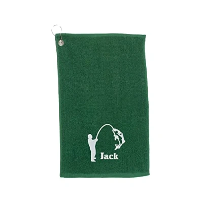 Personalised Embroidered Fishing Towel, Luxury Custom Gift for Fishermen/Women, Accessory Gift, Monogram (Green, Fisherman)