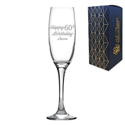 Personalised Engraved Champagne Flute Happy 60th Birthday Modern Design Gift BoxedGlass Holds 7.43oz/220ml, Customise with Any Name, in The UK