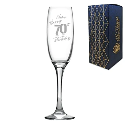 Personalised Engraved Champagne Flute Happy 70th Birthday Balloon Design Gift Boxed, Glass Holds 7.43oz/220ml, Customise with Any Name, in The UK