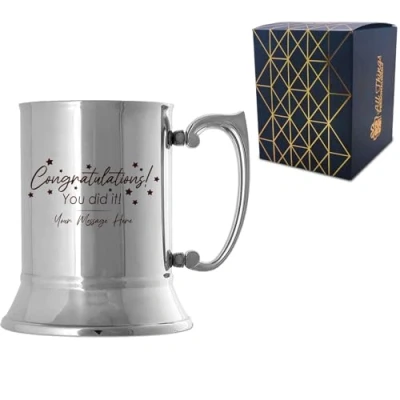 Personalised Engraved Graduation Steel Tankard with 'Congratulations You Did It' Design, Personalise Any Name or Message, Gift Box Included, Laser Engraved, University College