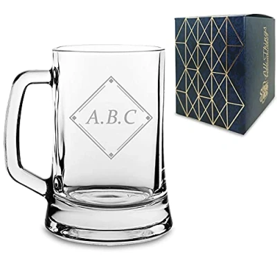 Personalised Engraved Novelty Beer Mug with Initials in Box Design, Gift Boxed, Perfect for Any Occasion