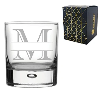 Personalised Engraved Novelty Initial and Name Whiskey Glass, Letter M, Personalise with Any Name, Gift Boxed, Perfect for Occasion