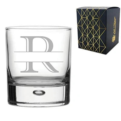 Personalised Engraved Novelty Initial and Name Whiskey Glass, Letter R, Personalise with Any Name, Gift Boxed, Perfect for Occasion