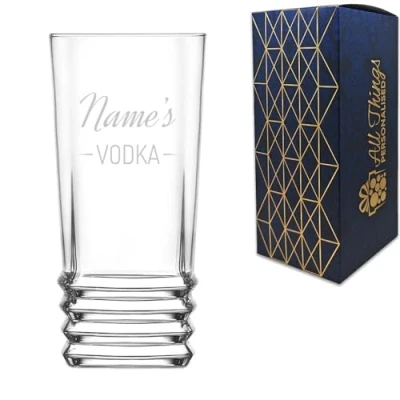 Personalised Engraved Novelty Vodka Elegan Hiball Tumbler Glass with 'Name's Vodka' Design, Customise Any Name for Occasion, Gift Box Included, Laser