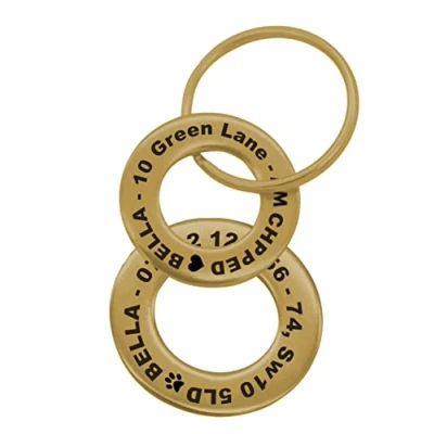 Personalised Engraved Pet Disc Dog ID Tag Brass Washer Tags with Free Engraving High Quality Bold & Dark Engraving So Your Text Will Stand Out! Each Tag Includes A Free Split Ring To Attach To Your Pets Collar! Range of Sizes & Sets Available! Simply select which size / set you would like, click 'Customize Now', enter your required engraving and we will do the rest!