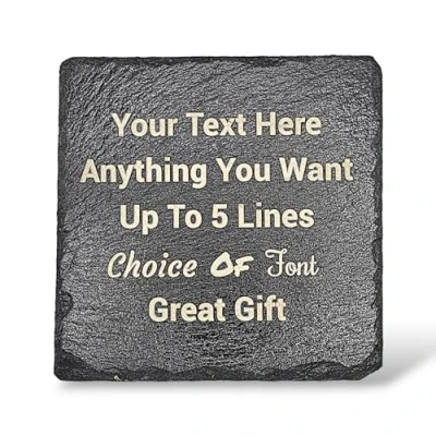 Personalised Engraved Square Slate Coaster/Place Mat Any Engraving Hand Finished in UK. 100mm