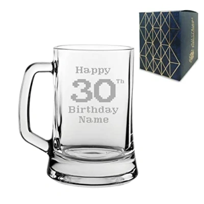Personalised Engraved Tankard Beer Mug Stein Happy 30th Birthday Pixelated Design Gift Boxed, 16.75oz/495ml Classic Glass, Any Name, in The UK