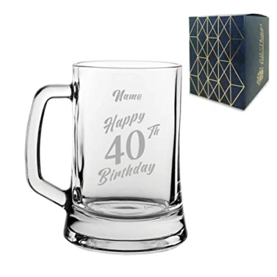 Personalised Engraved Tankard Beer Mug Stein Happy 40th Birthday Slanted Design Gift Boxed, 16.75oz/495ml Classic Glass, Any Name, in The UK