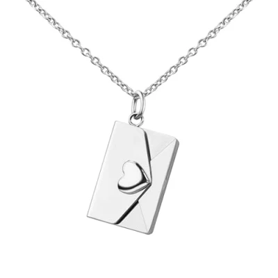 Personalised Envelope Heart Necklace Silver Locket with Letter, Valentines Gift for Her Message, Birthday Engraved Love Mother Secret Note, Letterbox,
