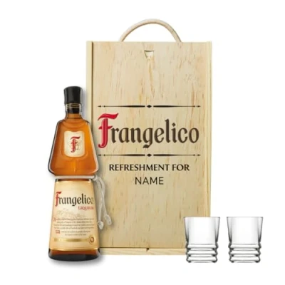 Beer HunterCelebrate special moments with Shot Glasses Gift Set Delight in the smooth, nutty flavour of Frangelico with this elegant gift set. It includes a bottle of the classic hazelnut liqueur and two stylish shot glasses, all presented in a beautifully crafted wooden box. Personalise the box with your chosen name or message to create a thoughtful and unique gift, perfect for liqueur lovers and special celebrations. Whatβs Inside? The gift set includes a 70cl bottle of Frangelico, two elegant shot glasses, and a personalised wooden box engraved with your chosen name. Perfect for gifting or as a great addition to your drinks cabinet.