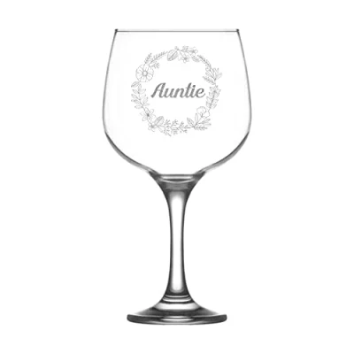Personalised Gin Glass for Auntie Flower 730ml Large Balloon Etched Gifts Christmas Presents Birthday Mothers Day
