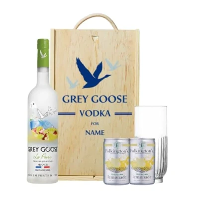 🍸 Explore the perfect gift with our personalised Grey Goose Peak Vodka Gift Set. This elegant set features premium Grey Goose vodka and customisable options, making it ideal for birthdays, anniversaries, or special celebrations. Show your thoughtfulness with a unique, high-quality gift that’s tailored just for them. Discover luxury and personal touch in every sip. 🍸 This luxurious set includes a bottle of premium Grey Goose Pear Vodka, a sleek vodka glass, and a refreshing lemonade mixer, perfect for crafting delicious cocktails. Add a unique touch by customising the vodka bottle with a name or message, making it an ideal gift for birthdays, anniversaries, or special occasions. With elegance, flavour, and a personal touch, this gift set is sure to impress. 🍸 This Persoanlised Grey Goose Vodka Gift Set contains: 1 x Grey Goose Pear Vodka, 2 x Folkington's Lemonade, 1 x Rocks Glass.