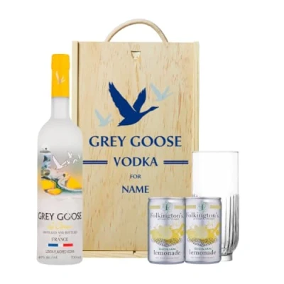 🍸 Explore the perfect gift with our personalised Grey Goose Lemon Vodka Gift Set. This elegant set features premium Grey Goose vodka and customisable options, making it ideal for birthdays, anniversaries, or special celebrations. Show your thoughtfulness with a unique, high-quality gift that’s tailored just for them. Discover luxury and personal touch in every sip. 🍸 This luxurious set includes a bottle of premium Grey Goose Lemon Vodka, a sleek vodka glass, and a refreshing lemonade mixer, perfect for crafting delicious cocktails. Add a unique touch by customising the vodka bottle with a name or message, making it an ideal gift for birthdays, anniversaries, or special occasions. With elegance, flavour, and a personal touch, this gift set is sure to impress. 🍸 This Persoanlised Grey Goose Vodka Gift Set contains: 1 x Grey Goose Lemon Vodka, 2 x Folkington's Lemonade, 1 x Rocks Glass.