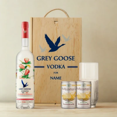 🍸 Explore the perfect gift with our personalised Grey Goose Vodka Gift Set. This elegant set features premium Grey Goose vodka and customisable options, making it ideal for birthdays, anniversaries, or special celebrations. Show your thoughtfulness with a unique, high-quality gift that’s tailored just for them. Discover luxury and personal touch in every sip. 🍸 This luxurious set includes a bottle of premium Grey Goose vodka, a sleek vodka glass, and a refreshing lemonade mixer, perfect for crafting delicious cocktails. Add a unique touch by customising the vodka bottle with a name or message, making it an ideal gift for birthdays, anniversaries, or special occasions. With elegance, flavour, and a personal touch, this gift set is sure to impress. 🍸 This Persoanlised Grey Goose Vodka Gift Set contains: 1 x Grey Goose Vodka, 1 x Fever-Tree Lemonade, 1 x Rocks Glass.