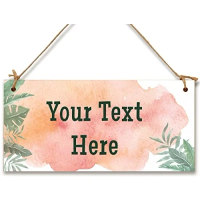 Personalised Hanging Plaque Your Custom Text Tropical Leaves Watercolour Decorative Wooden Door Wall Sign Home Decor Add Any Message
