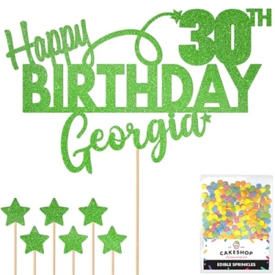 Personalised Happy Birthday Glitter Cake Topper by Cakeshop Custom Colour Any Name & Age Decoration for 1st 10th 16th 18th 20th 21st 30th 40th 50th 60th 70th 80th (Green)