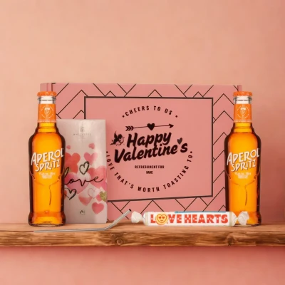 Happy Valentine’s Aperol Spritz Gift Set Bright, Bubbly, and Made for Valentine’s Day Celebrate Valentine’s Day with effortless Italian style thanks to the Happy Valentine’s Aperol Spritz Gift Set with Chocolate, Love Hearts & Metal Straw. This vibrant, ready-to-enjoy gift set features two 200ml bottles of Aperol Spritz, perfectly mixed and ready to pour — no measuring, no mixing, just pure spritz perfection. Paired with sweet Valentine’s treats and a stylish reusable metal straw, this set is designed for relaxed, romantic sipping and sharing special moments. What’s Inside the Gift Set * 2 x Aperol Spritz Ready-to-Drink (200ml each) * Valentine’s chocolate bar * Love heart sweets * Metal reusable straw Perfect for Valentine’s Gifting Fun, colourful, and beautifully presented, this Aperol Spritz Valentine’s Gift Set is ideal for couples, friends, or anyone who loves an easy-going cocktail with style. Ready to enjoy straight from the bottle, it’s the perfect way to toast love with zero fuss. 🧡🥂