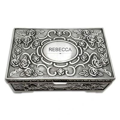 With exquisite laser engraving on the lid, this high-end silver jewellery box can be customized according to your need Wonderful gift choice for daughter, sister, girlfriend, wife, mom, granny or anyone else for Birthday, Wedding, Anniversary, Valentine or Christmas gift Lined with black velvet, this vintage rectangle jewellery case organises and protects your rings, necklaces, bracelets, earrings and cufflinks Please select your favorate style and click customize now to add your words Trinket box size: 131mm x 87mm x 53mm