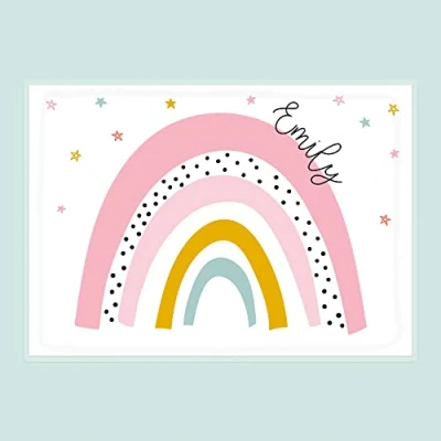 Personalised Kids Placemat Chasing Rainbows. Dinner Table Mat, Cute, Wipeable, Bright, Pastel, Colourful, Children, Dinnertime, Fun Design, Durable.