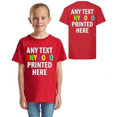Personalised Kids T Shirt Image Text Logo Children`s Tee Boys Girls Gift Red
