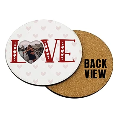 Personalised Love Heart ANY IMAGE Gift for Him/Her, Couple, Best Friend, Wedding, Birthday, Anniversary, Valentines, Tableware, Coffee/Tea/Drink Coaster. (Round Shaped Coaster)