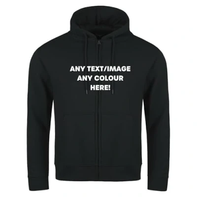 Personalised Mens Full Zip Brushed Back Fleece Hoodie (Black, XL)