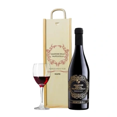 Beer HunterPersonalised Montigoli Amarone della Valpolicella Red Wine Gift Set β 75cl The Personalised Montigoli Amarone della Valpolicella Gift Set features a 75cl bottle of premium Italian red wine, elegantly presented in a wooden box. Celebrated for its rich, full-bodied profile and complex flavors, this luxury Amarone is ideal for connoisseurs and special occasions. Customisable for a personal touch, it serves as a distinguished gift choice for him or her, blending tradition with sophistication.