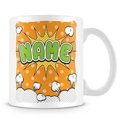Personalised Mug Add Name Comic Style Design Ideal for Work or Gift Orange