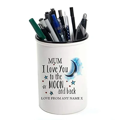 Personalised Mum I Love You to The Moon and Back Desk Tidy Accessories Pen Pot Pencil Makeup Brushes Holder Stuff Storage Birthday Present.